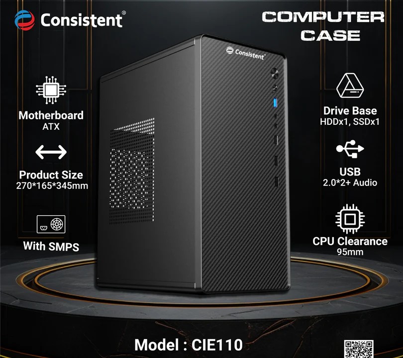 Consistent PC Case/SMPS (CIE110) Computer Case 4 Full Slots VGA Max 250mm Bold Design for Bold Performance.